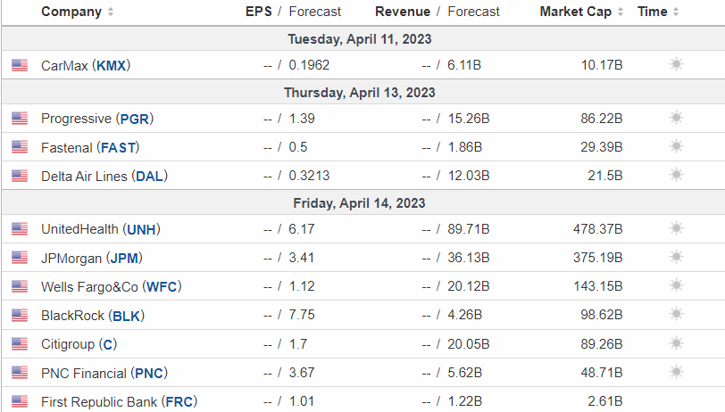 Banks are starting up the earnings season this week. Last time Credit Suisse was going to report earnings the SEC came in to delay the publication of the report. It will be interesting on how these banks report earnings with the recent turmoil of Silicon Valley Bank & Credit Suisse.