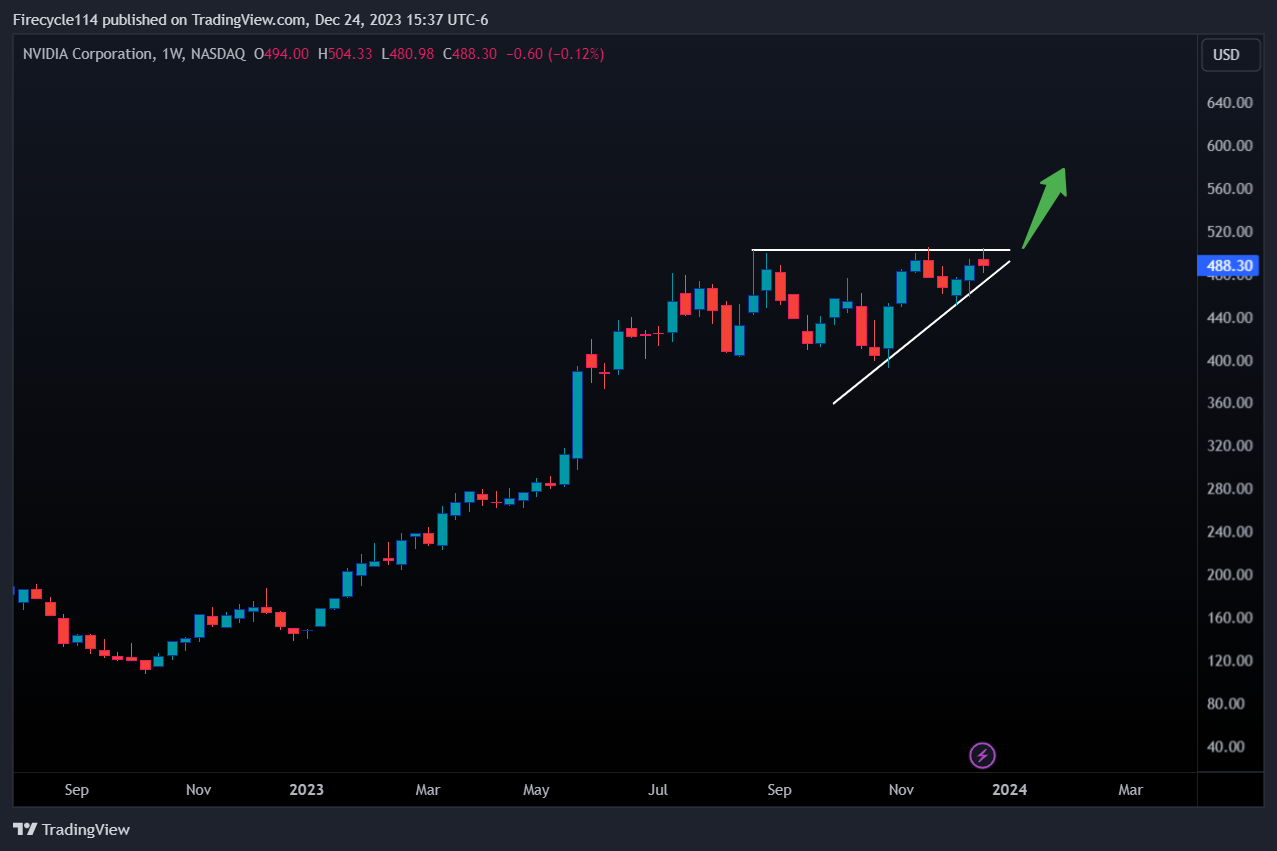NVDA 0.00%↑ has a massive ascending triangle on the weekly and daily timeframe. It has gotten extremally tight and it is a matter of time before it breaks out to the upside. I have made a whole video on it so make sure to watch that!