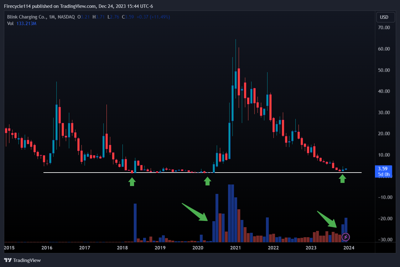 BLNK 0.00%↑ is the lowest it has ever been on the monthly timeframe. We also have Ken Griffin who owns one of the biggest Hedge Funds, who is also betting on this stock. I made a whole video on this play!