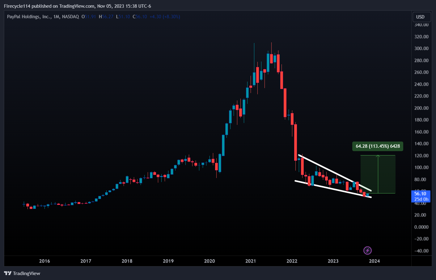 PYPL 0.00%↑ sitting at a yearly low with a falling wedge setup on the monthly timeframe. This is going to be a play on shares with our risk to reward ratio of -15% to 113%. The risk to reward is amazing, making it a solid hold through the Holidays especially if the overall market runs, PayPal will also run.