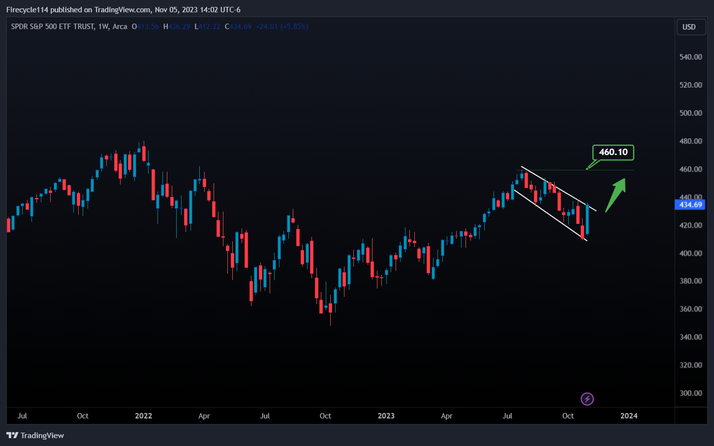 SPY 0.00%↑ downtrend breakout on the daily and weekly timeframe. Historically the overall market is bullish through November and December which leads us to the Holidays with higher consumer spending and consumer confidence in the economy.