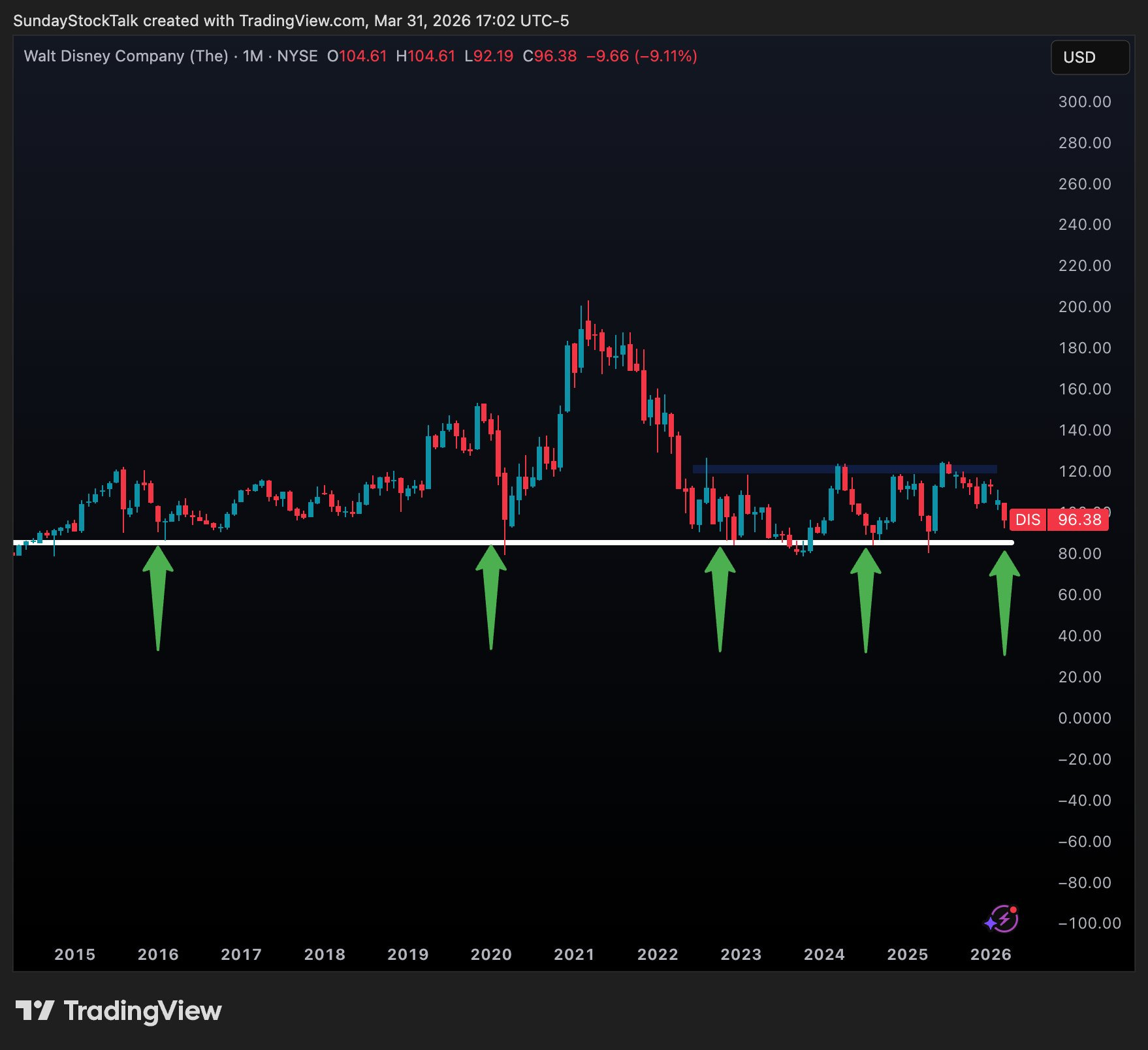 DIS 0.00%↑ has been trading between 84-123 for a while, 45% moves to play a quick bounce