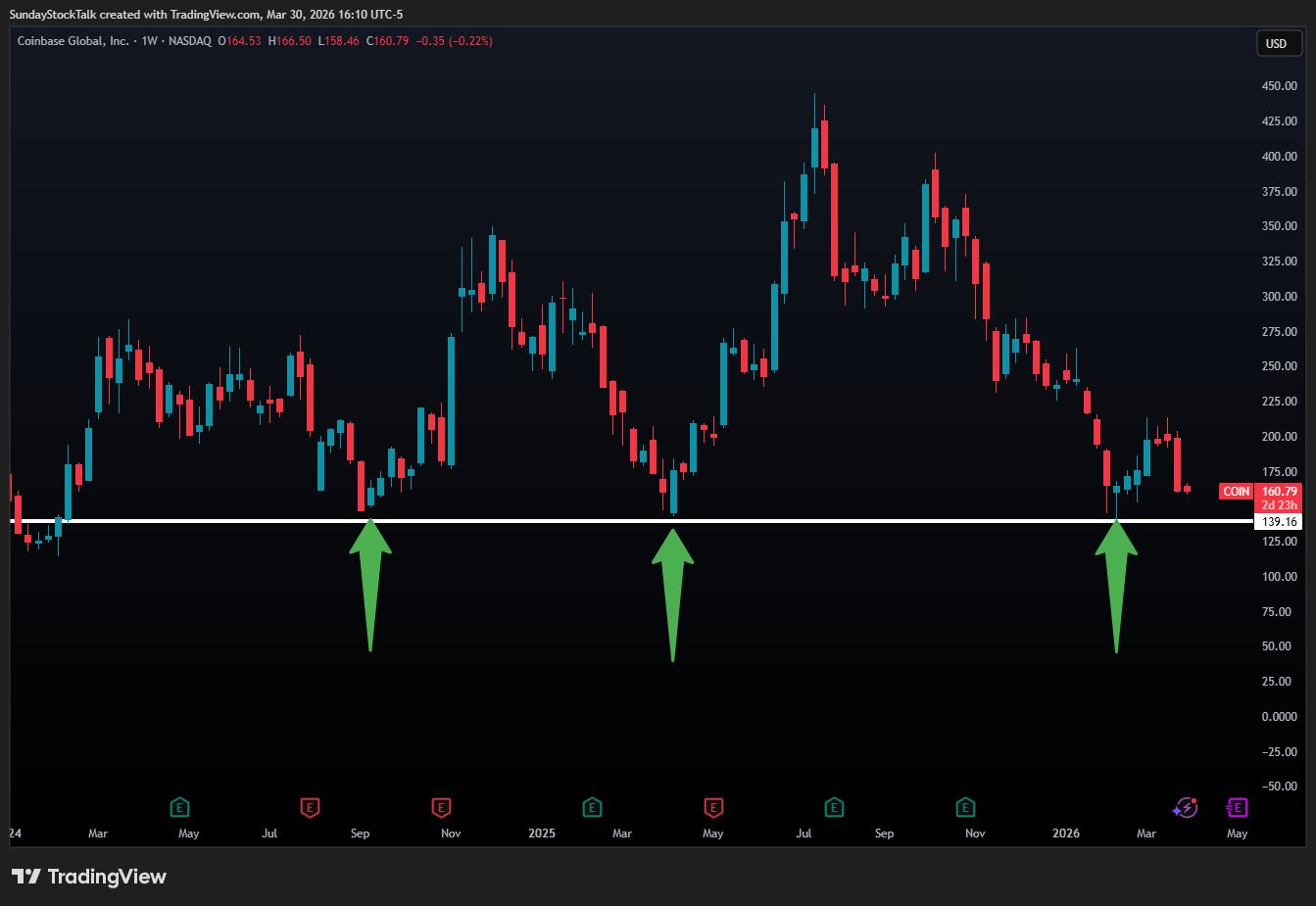 COIN 0.00%↑ Weekly Support + 139 Buy Zone