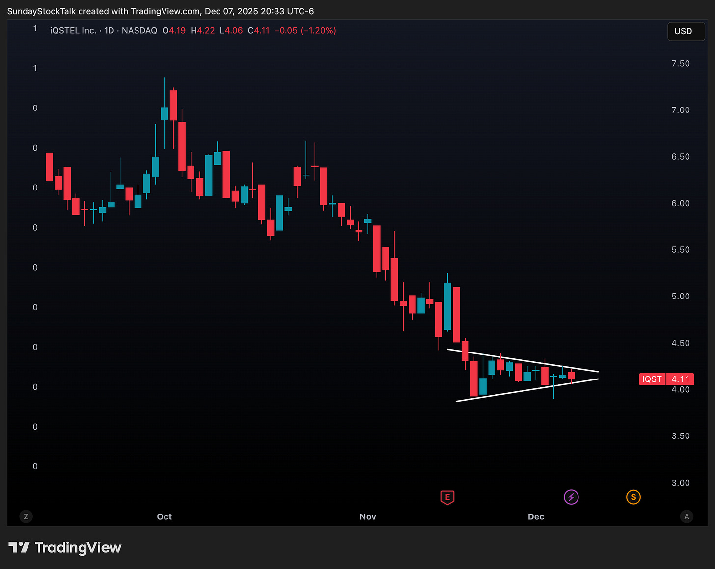 IQST 0.00%↑ watching for it to bottom out, consolidating on the daily with a symmetrical triangle.