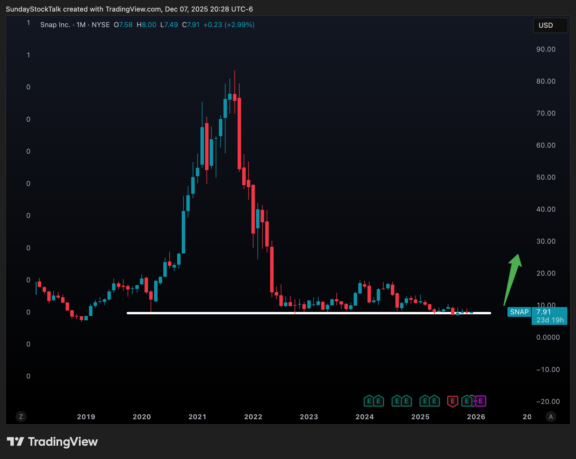 There is a lot of upside potential especially with 2026 having a good catalyst of the AR Glasses as a competitor to $META. 2026 will be a good hype trend for Smart Glasses with displays and with $SNAP trading this low the risk to reward is amazing