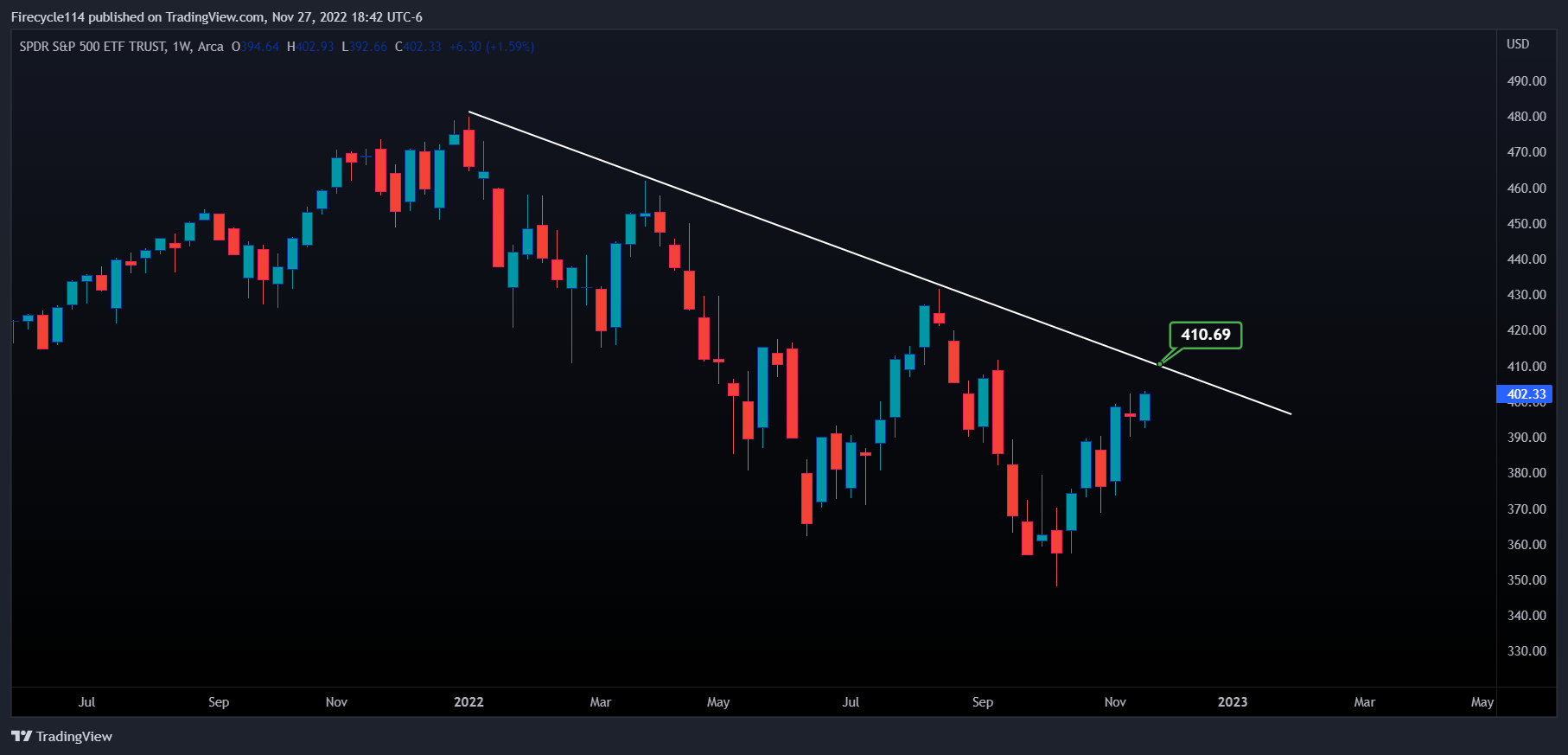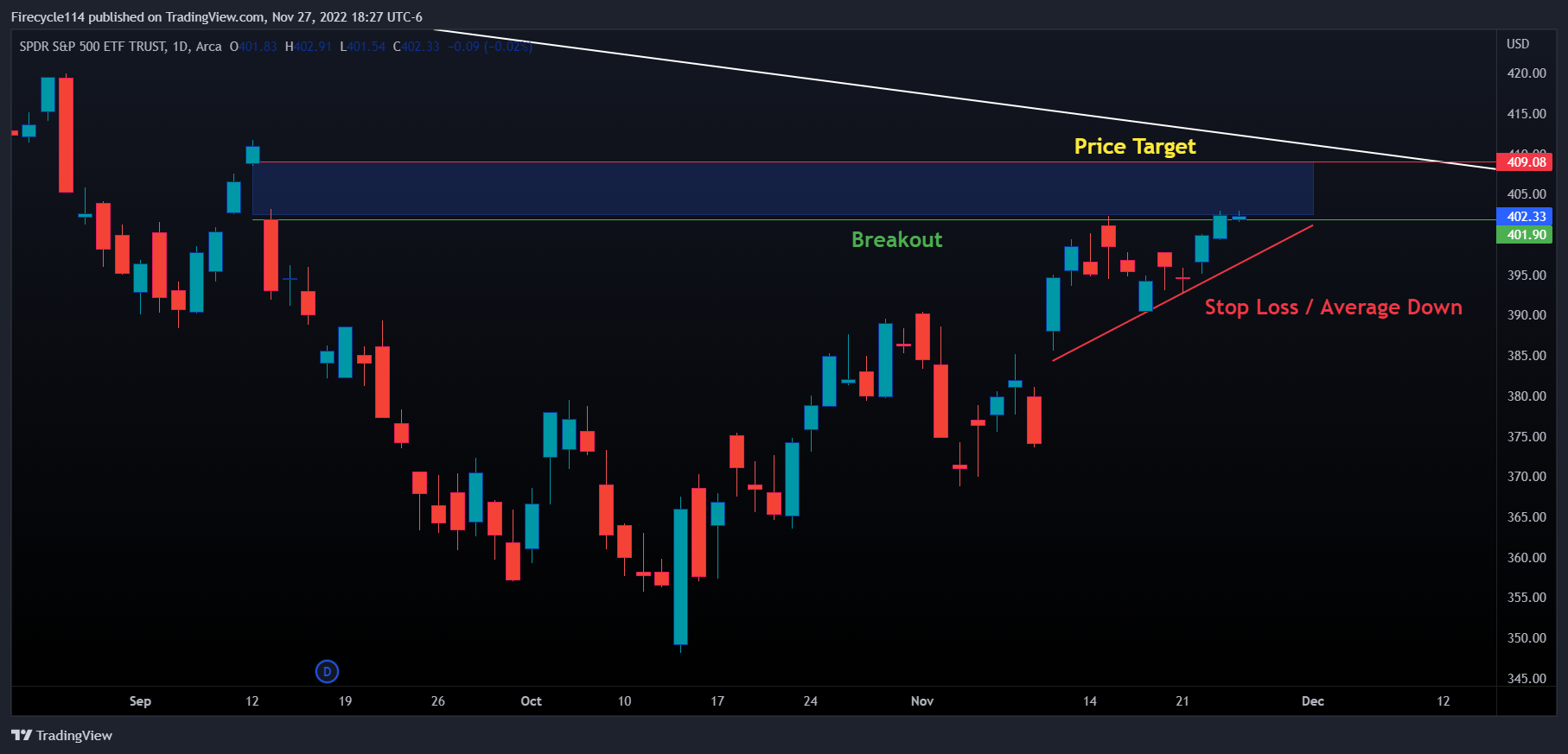 Technical analysis is screaming bullish for the overall markets the SPY 0.00%↑ andQQQ 0.00%↑. The price target for the SPY is $410 this week. Major level of resistance. I am bullish until we hit $410 and that is where I will be selling off my positions and just staying on the sidelines. The chart looks great with gaps to the upside for both $SPY & $QQQ.